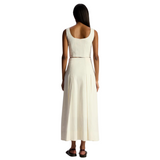 The Isabel Top is crafted from our compact linen stretch fabric in timeless white. This scoop neck top features a cropped length and visible seams that accentuate the body’s natural curvature.