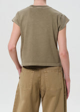 Looks Like: Light dusty sage crewneck tee with cap sleeves