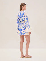 The Noriko Dress is a cotton-linen blend tunic dress featuring a removable macrame belt.