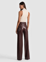 A modern take on classic tailoring. The Alexander is cut from supple vegan leather with a high rise and wide leg for a polished, elongated silhouette. Finished with a clean front, hidden closure, and slim straight fit that moves with you. They mean business - but they also know how to have a good time.