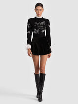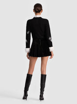 A knit that makes a statement. Part of our collection inspired by the Royal Shakespeare Company's costume archive, Carolann is cropped in merino wool with embroidered florals and ruffled cuffs. The Shakespeare quote “Though she be but little, she is fierce" is stitched across the front. Equal parts cozy and commanding, it’s proof that your sweater can be your power move.