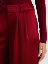 The Kennedy double pleated trouser is our newest take on the perfect pant. Destined to be your go-to, they're cut from a luxe satin and fall into the most flattering wide leg. Plus, we love the gorgeous shade of rich oxblood for fall and winter styling. This pant will make getting dressed extra-easy.