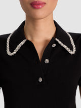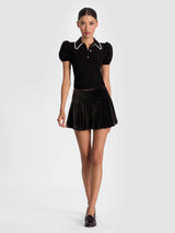 Embellished, girly, and just a little bit flirty. The Ramona pullover is a playful take on the classic knit with puff sleeves, a button front collar, and cropped construction. It’s the kind of cozy that still looks pulled together while feeling totally luxe. Style it solo or layer it under a blazer for that extra preppy punch.