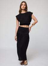 The Pacific Tank features a open crew neckline, and a flattering wide shoulder line, and an the tencel cotton waist band adds comfort and styling versitility, you can adjust the crop to your liking. Pair it back to the Linen Bubble skirt for a tonal set, or pair it with denim for an effortlessly relaxed look.