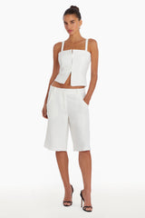 Elevate your wardrobe with the Amanda Uprichard Tisha Top in White. This expertly crafted crop top adds a touch of sophistication to any ensemble. Made with high-quality materials, this top is both stylish and comfortable. Create a chic and confident look with the Tisha Top.