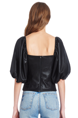 Take this stunning faux leather top from the day to the night! Featuring puff sleeves, a square cut neckline and stretchy leather looking fabric for a flattering fit. This top has a unique simple look with an edge.