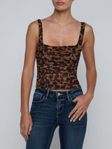 The flattering Rasha shirred tank is back in a classic leopard print. A square neckline and wide straps complete its look. Wear on its own or with your favorite blazer—it’s effortlessly chic, versatile, and perfect for day to night.