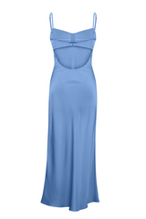 Anna October's iconic Waterlily dress is a sleek day to night dress that emphasizes the most delicate lines of the body. The dress is graced with a bustier-style bodice, an open back, adjustable straps, and gentle zigzag stitches. Its floor-length skirt and flawless bias cut make the dress a perfect choice for a cocktail evening or any special occasion. The dress is crafted from fabric created using recycled plastic bottles.