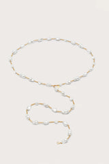 Make a statement with this versatile Vana Belt, a sophisticated piece that transcends traditional styling. Irregular faux pearls create an organic, eye-catching aesthetic, while warm gold-toned hardware adds refined elegance. The secure clasp closure ensures reliable wear, whether you layer it as a striking necklace or cinch it at the waist for dimensional belt styling. A modern essential that adapts to your wardrobe's demands.