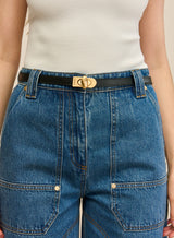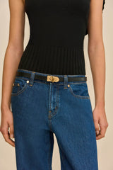 A sleek skinny belt crafted from smooth Napoli leather, designed to wrap and adjust with ease and finished with our signature organic turn-lock hardware.