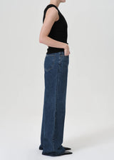 Featuring a waist accentuating high-rise, a relaxed cut through the hips and a wide leg. Style it with a sleek tee or ribbed knit. This fit is true to size.