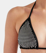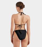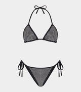 90s disco is back. Inspired by our iconic 1992 advertising campaign, the Monica bikini has a classic triangle silhouette, adjustable neck and side ties. Made in our new "lava" fabric, a lycra material with90s molten silver stud detailing on the front.