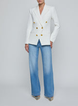 This style was featured in our Spring 2026 NYFW presentation, After Hours. A timeless essential, the Kyomi is our signature double-breasted blazer offered in a longer line, now back in white.