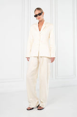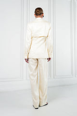 The Seraphine Blazer redefines tailoring with a sculpted silhouette and subtle edge. Designed with a clean three-button front, it draws in at the waist for a flattering line while a structured back overlay adds unexpected dimension. It’s a statement piece that moves effortlessly from day to night.