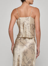 The Calista silk camisole is a closet essential. Finished in an easy cropped length, it pairs well with everything from jeans and trousers to skirts. Now in a sophisticated horse bit chain print.