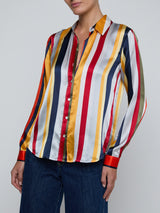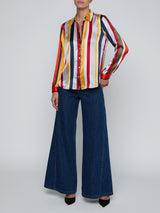 Meet the iconic long-sleeve silk button-down that belongs in every wardrobe. This L'AGENCE bestseller is now back in a bright multi-colored stripe.