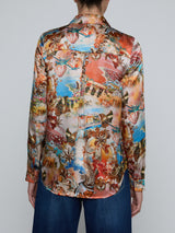Meet the iconic long-sleeve silk button-down that belongs in every wardrobe. This L'AGENCE bestseller is now back in a travel collage print.