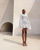 Channel effortless charm in the Marley White Crochet Mini Dress, showcasing intricate crochet patterns and a playful silhouette that's perfect for sunny days and warm nights.