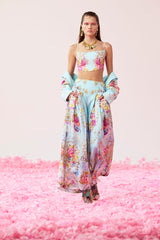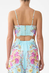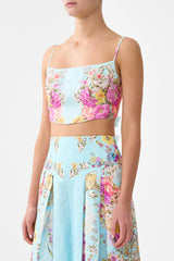 The Bazaar Blooms Corset Crop Top is a handcrafted linen silhouette designed by our in house artisans. Reimagined in an exclusive limited edition print, this corset crop top is fitted and cut to a cropped length with adjustable straps for versatility. Its exposed zip and shirred back panel ensure effortless wear, while intricately placed crystal embellishments finish the design with luminous detail.