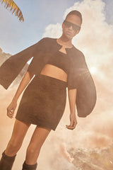 Our Cysa short skirt, crafted completely in nettle fabric, is an ode to femininity. With its interesting 3D texture and delicate finishing, it’s an elegant piece that flatters any silhouette and creates the effect of gorgeous long legs. Wear it with voluminous blouses or cinched tops to create different looks.