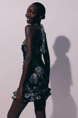 Step into effortless style with the Charo Ruiz Short Dress Lexy in Black/White. With its sensual silhouette and halter neckline, this dress will hug your body in all the right places. The gathered torso and lightweight ruffle skirt add a touch of movement to this cotton printed piece. The perfect addition to your luxurious wardrobe.