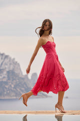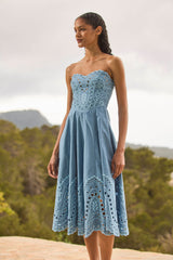 The MARLIN dress is pure elegance with a romantic soul. Its structured bustier with a scalloped sweetheart neckline gently enhances the bust, while the fitted bodice sculpts the silhouette with precision.