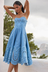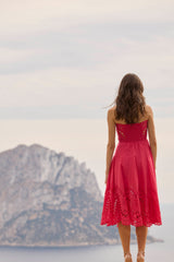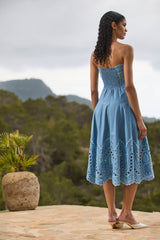 The fluid midi-length skirt, finished with artisanal embroidery along the hem, adds movement and sophistication to every step. A timeless, feminine piece — perfect for moments when subtle beauty speaks volumes.