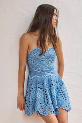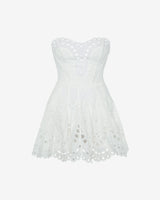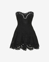 The BAIL dress is an iconic piece that blends femininity and movement with a sophisticated flair. Its scalloped sweetheart neckline frames the bust with elegance, while the fitted bodice sculpts the silhouette with precision. Crafted with structured panels, the full embroidered skirt flares into a dynamic A-line shape that brings volume and flow. A flattering, sensual silhouette — ideal for moments when you want to stand out with grace and strength.