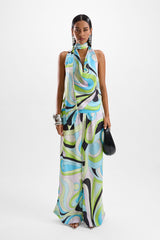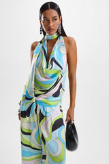 A constellation of shapes formed in a kaleidoscope of color, create the retrofuturistic print dreamed up from planets afar.