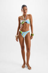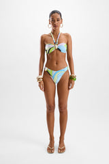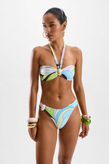 An elevated bikini bottom with mid-coverage and jewel-like adornments.