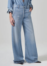 The Beverly Trouser is a polished take on the Beverly Slouch Boot, cut in an ultra-fluid denim with sophisticated trouser detailing.