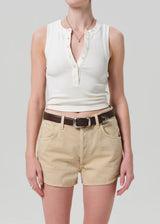 The Carolyn Tank is a button-front staple, crafted from signature rib fabric for a form-fitting silhouette. Perfect for layering with tonal pieces or wearing on its own, this versatile tank offers effortless style that works for any occasion. Pair it with high-waisted denim for a sleek, streamlined look or dress it up with a blazer for a more polished vibe.