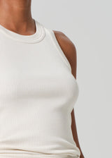 Our best-selling essential staple. The Isabel is a form-fitting, ribbed racerback tank with a high neckline and cutaway armholes. Crafted in a lightweight, breathable organic cotton with the perfect amount of stretch for all day wearability and support. Designed to be worn on its own or styled as a layering piece, season to season.