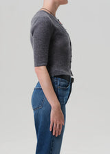 Looks Like: Dark heathered grey elbow sleeve fitted cardigan
