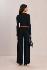 A long sleeve crop top with sculptural hardware cutout at the center bodice.