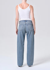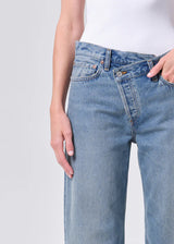 The Arc Criss Cross Jean in Conclusion redefines a signature silhouette with a modern edge. Crafted from rigid regenerative and recycled cotton, this medium indigo denim features a criss cross waistband, relaxed top block, and curved leg for a subtly sculpted fit. A 32” inseam elongates the look, blending structure with effortless wearability.