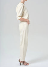 The Miro offers a refined take on the barrel silhouette, sitting high at the waist with a relaxed shape that softly tapers to the ankle. Crafted from our Signature twill in the Plaster wash—a warm cream, off-white tone—it mirrors the ultra-luxurious feel of cashmere while maintaining a structured, modern drape. Effortless and elevated, it’s a timeless piece designed for everyday polish.