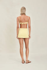 The Jace is a mini skirt with an elastic waistband and can pair back with our Jamie Top.