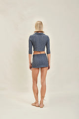 The Lila is a fitted, cropped, button-down jacket with a collar. Pairs best with the Jay Skirt.