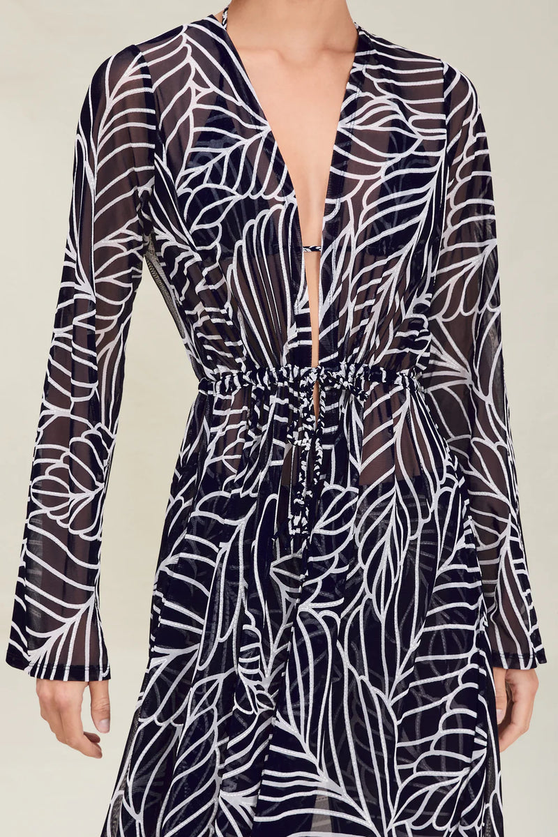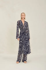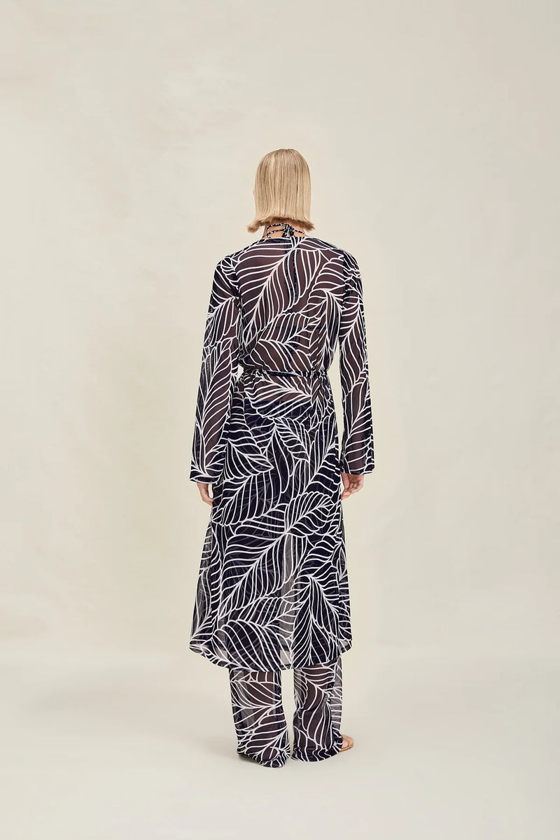 The Oakley is a maxi robe with long sleeves, an adjustable waist, and braided detail at center-front. Pairs best with our Ollie Pant.