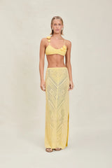 The Vie is a knit maxi skirt with an elastic waistband and side slit. Pairs back with the Vale Top.