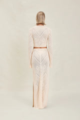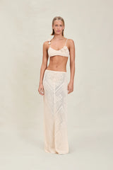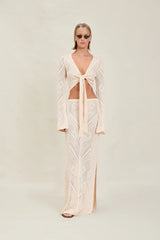 The Vie is a knit maxi skirt with an elastic waistband and side slit. Pairs back with the Vale Top.