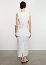 Crafted from 100% linen, the Linen Pencil Skirt features a back slit and a concealed back zipper.