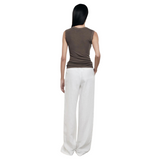 These pants are cut from light and airy 100% linen with relaxed straight legs. Featuring functional side and back pockets, belt loops, and a hook closure. Pair them back to the Linen Scarf Top for a coordinated look.