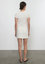 The Puckered Cap Sleeve is crafted with a unique delicately expandable texture that drapes beautifully for a flattering, comfortable fit. This design is finished with a classic crew neckline and flattering cap sleeves.