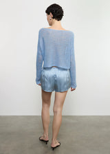 The Silk Slip Short is made from 100% silk. It features an elastic waistband and a relaxed, flirty fit.