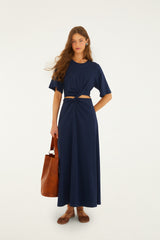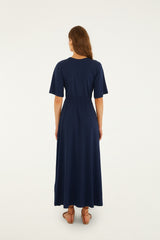 Farm Rio - Short Sleeve Midi Dress - Dark Blue