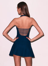 Go from brunch to bar in our flirty Sofia Flared Dress. Features ultra flattering halter scoop neck and strappy open back. Cut from soft stretch jacquard with corset seaming to show off your waist. Fitted bodice with playful flare skirt. Layer over your favorite Essentials Panty for a seamless look.