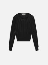 An alternating stripe of mesh and opaque cotton for sheer impact. A modern, lightweight knit designed to show just enough skin.