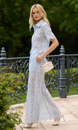 These chic cotton eyelet pants feature a shorts lining for a semi-sheer effect, an elastic waistband, side slits, and a modern wide-leg, ankle-length silhouette. Perfect for slipping over a bathing suit or pairing with a tank for relaxing in style.